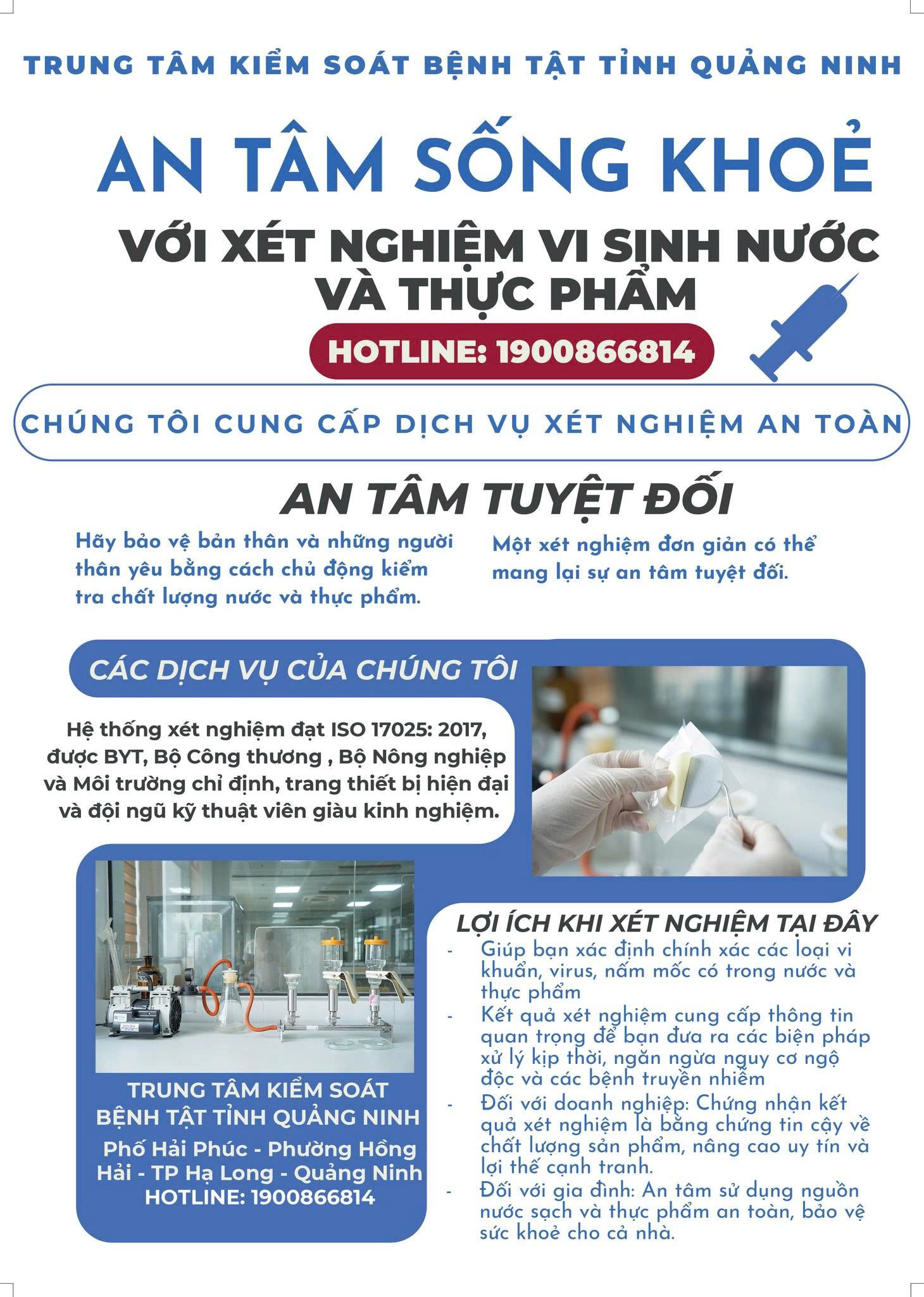 AN TÂM SỐNG KHOẺ VỚI XÉT NGHIỆM VI SINH NƯỚC VÀ THỰC PHẨM.