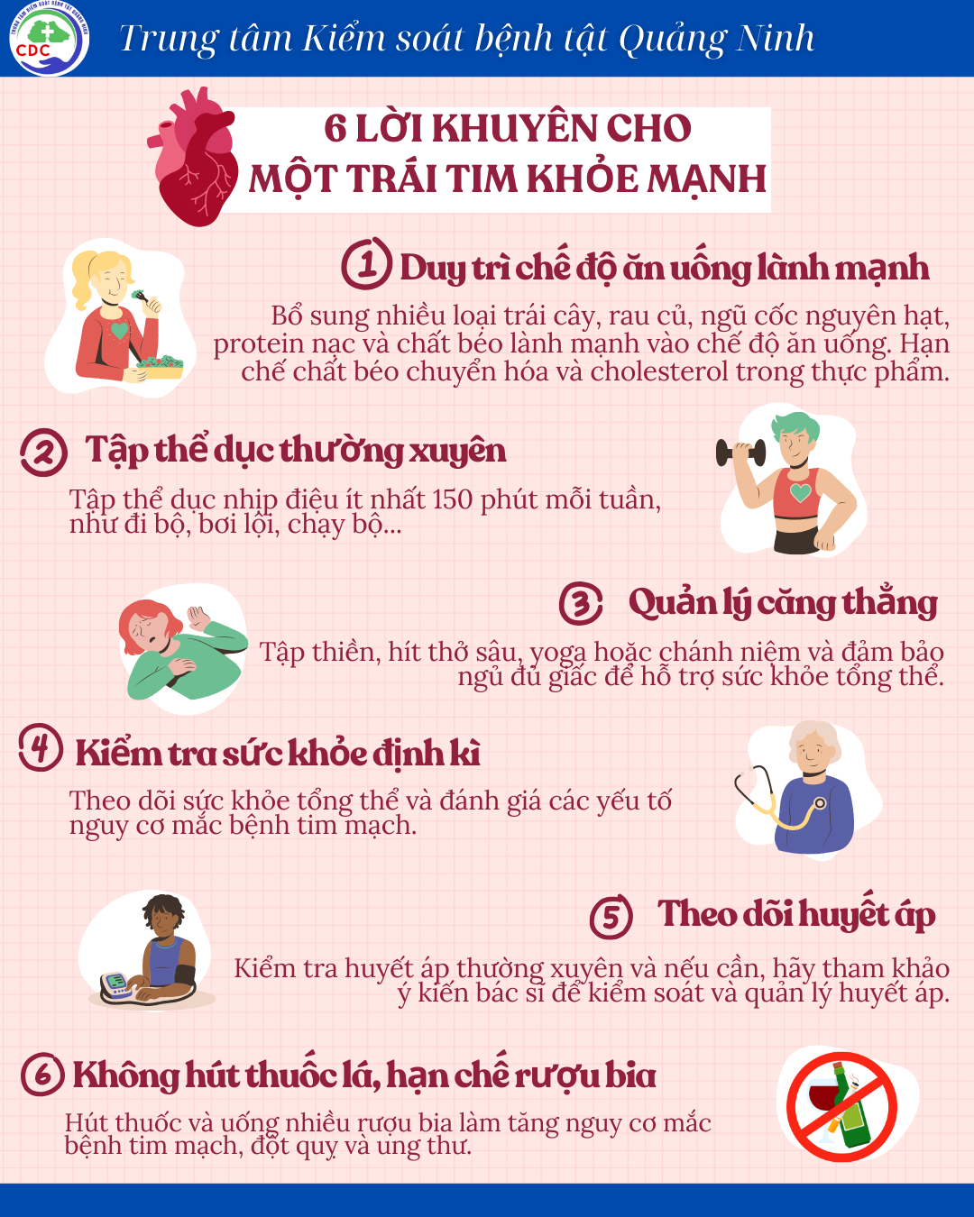 Dưới đây là 6 lời khuyên để phòng bệnh tim mạch hiệu quả: