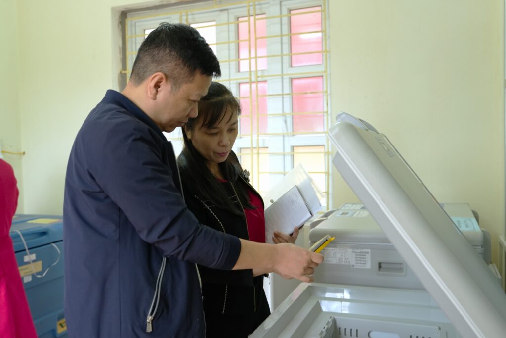 Đoàn giám sát tập trung kiểm tra, hướng dẫn và hỗ trợ vận hành, bảo dưỡng và quản lý buồng lạnh, tủ lạnh bảo quản vắc xin theo đúng quy định của Bộ Y tế