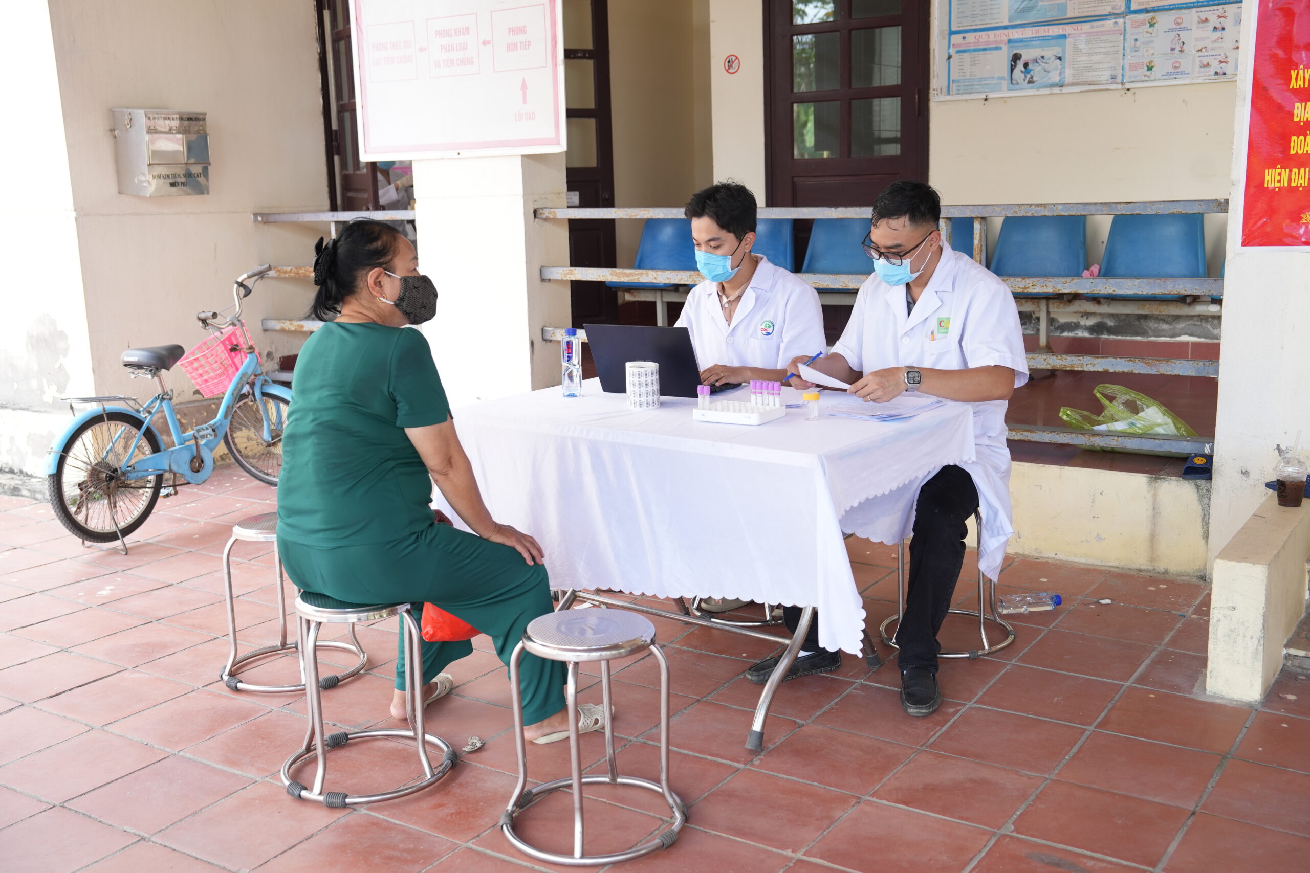 Nhóm nghiên cứu điều tra, thu thập mẫu ở người dân