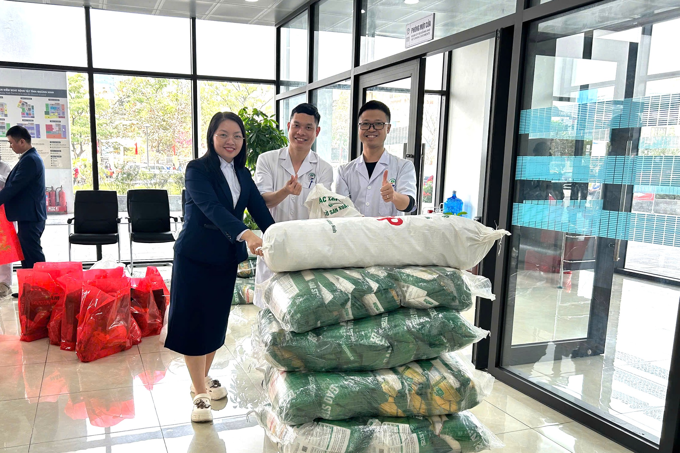 CBVCLĐ CDC Quảng Ninh phấn khởi khi nhận được những phần quà Tết thiết thực