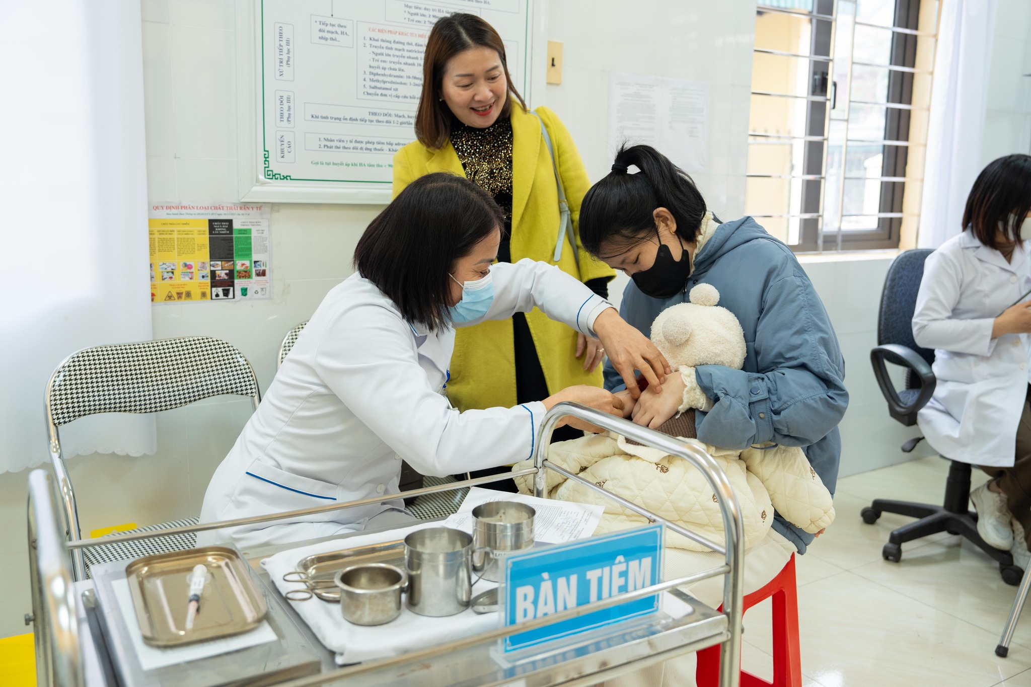 - Theo dõi sát sao: Ê kíp trực theo dõi 30 phút sau tiêm để xử lý mọi tình huống.