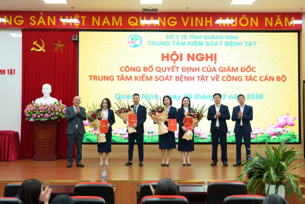 Tại hội nghị, đồng chí Vũ Quyết Thắng – Giám đốc Trung tâm Kiểm soát bệnh tật tỉnh đã trao các Quyết định bổ nhiệm chức vụ Phó trưởng khoa/phòng kể từ ngày 9/2/2026 cho các đồng chí: